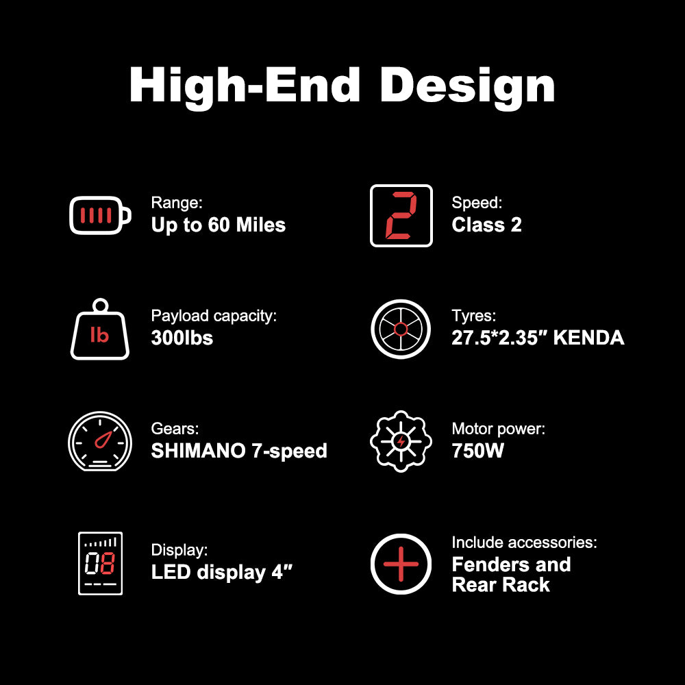 B52 Fat Tire Electric Bike 750W Motor 48V 15.6Ah Battery